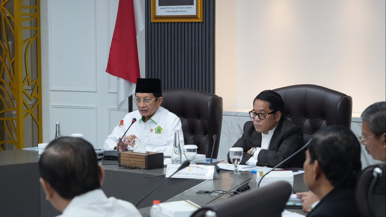 Rapat yang dihadiri pejabat eselon I dan II Kemenag itu juga membahas tindak lanjut kebijakan bantuan sosial keagamaan, pembangunan rumah ibadah, serta penguatan data kelembagaan keagamaan di seluruh Indonesia.