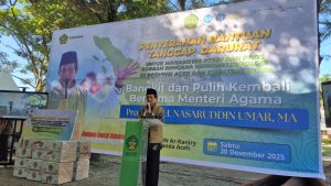 SOALINDO—BANDA ACEH — Menteri Agama Republik Indonesia, Prof. Dr. Nasaruddin Umar, menyerahkan secara langsung bantuan tanggap darurat kepada mahasiswa Perguruan Tinggi Keagamaan Islam Negeri (PTKIN) dan Perguruan Tinggi Keagamaan Islam Swasta (PTKIS) yang terdampak bencana hidrometeorologi di Aceh dan Sumatera Utara.